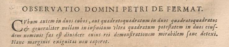 [5] « Il est impossible de partager soit un cube en deux cubes, soit un bicarré en deux bicarrés, soit généralement une puissance quelconque supérieure au carré en deux puissances du même nom»