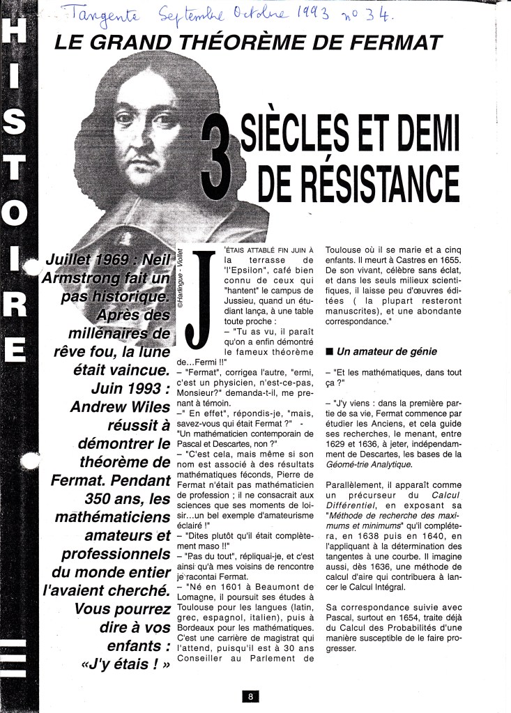 [1] J.B. HIRIART-URRUTY, professeur de mathématiques à l’université de Toulouse créateur du Prix Fermat, prix internatinal e mathématiques dans : A-ton résolu la conjecture de M. de Fermat. « La dépêche du Midi ».1° août 1993