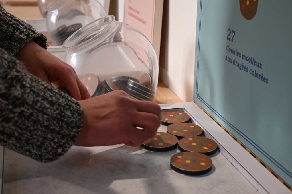 Le mélange entre la science et la gourmandise a donné naissance à une expositions claire et lumineuse – beau mobilier, espaces colorés-, un lieu accueillant où tout semble à portée de main.